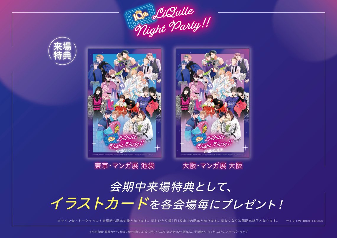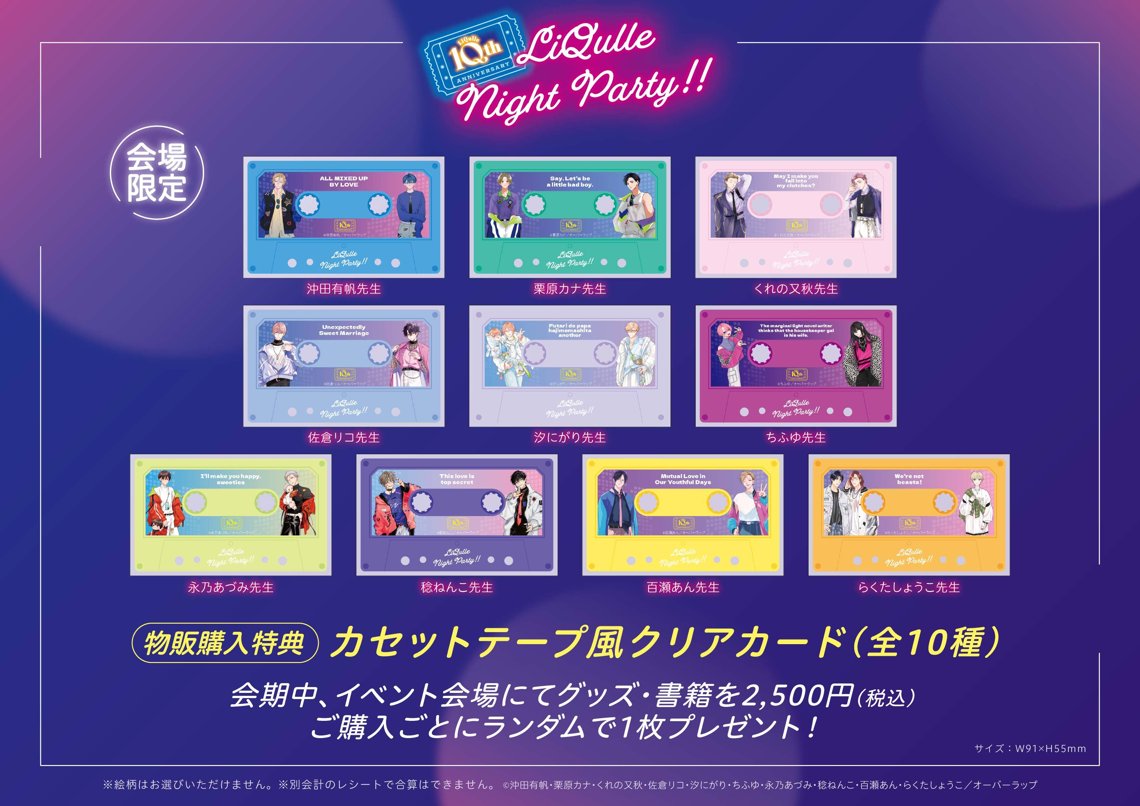 ・各先生お一人様1回のお申し込みのみ有効です。「LiQulle "SPECIAL TALK" Night Party!!」、「永乃あづみ先生リアルサイン会」の同時申込は可能です。それぞれ独立した抽選対応となりますので申込状況による抽選への影響はありません。