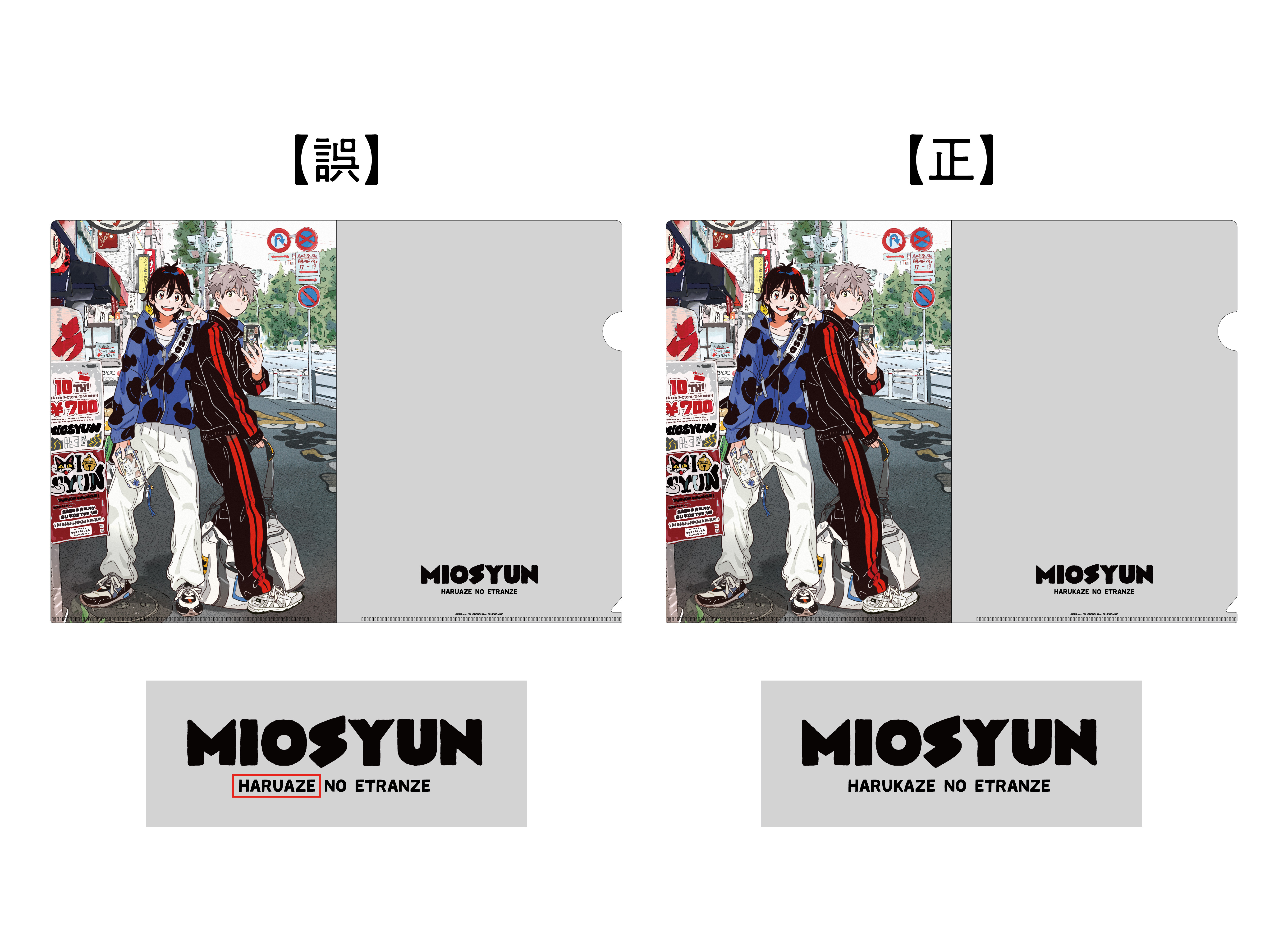「紀伊カンナ先生『春風のエトランゼ』コラボカフェ -みおしゅん on the trip!-」にて販売中の下記商品につきまして、デザイン上の不備がございました。