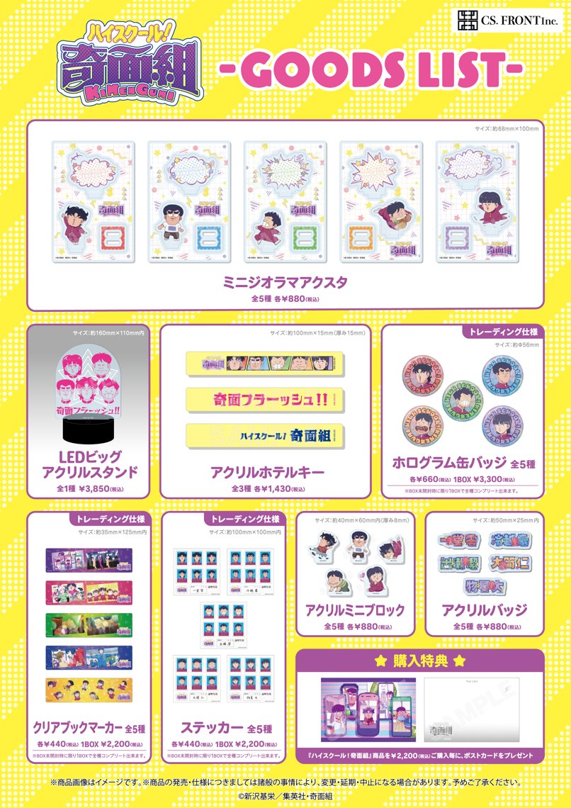 『ハイスクール!奇面組』ポップアップストア at マンガ展 販売グッズを2,200円(税込)ご購入毎に「ポストカード」を1枚配布いたします。
